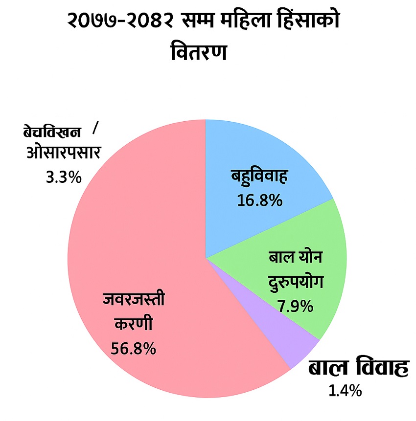 बालविवाह रोक्न कानुनी कडाइ गरिए पनि व्यवहारमा स्थानीय तहमा प्रभावकारी निगरानी हुन सकेको छैन । यौनजन्य अपराधका घटनाहरू अझै भयावह छन् । पाँच वर्षको अवधिमा मात्रै जबरजस्ती करणीका १२ हजारभन्दा बढी घटना दर्ता भएका छन् । यौन दुव्र्यवहार, बालयौन दुरुपयोग, जबरजस्ती करणी उद्योग जस्ता अपराधले महिलाको मानसिक स्वास्थ्य, आत्मविश्वास, सामाजिक जीवन र भविष्यमा गम्भीर असर पारिरहेको छ ।