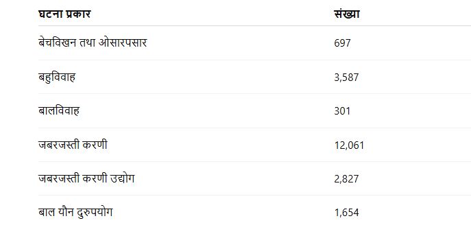 धेरै घटना प्रहरीसम्म आइपुग्दैनन्, धेरैजसो पीडितले सामाजिक लाज, धम्की, परिवारको दवाव वा कानुनी प्रक्रियाको डरले उजुरी गर्नै सक्दैनन्। विदेशमा रोजगारी, वैवाहिक सम्बन्ध, सौन्दर्य प्रतियोगिता, मॉडलिङ, रोजगारीको प्रलोभन, प्रेम सम्बन्धको दुरुपयोगजस्ता कारणले महिलाहरू बेचबिखनमा पर्ने जोखिम व्याप्त छ । त्यस्तै बहुविवाहका ३ हजार ५८७ घटना र बालविवाहका ३ सय १ घटना प्रहरी रेकर्डमा छन् ।