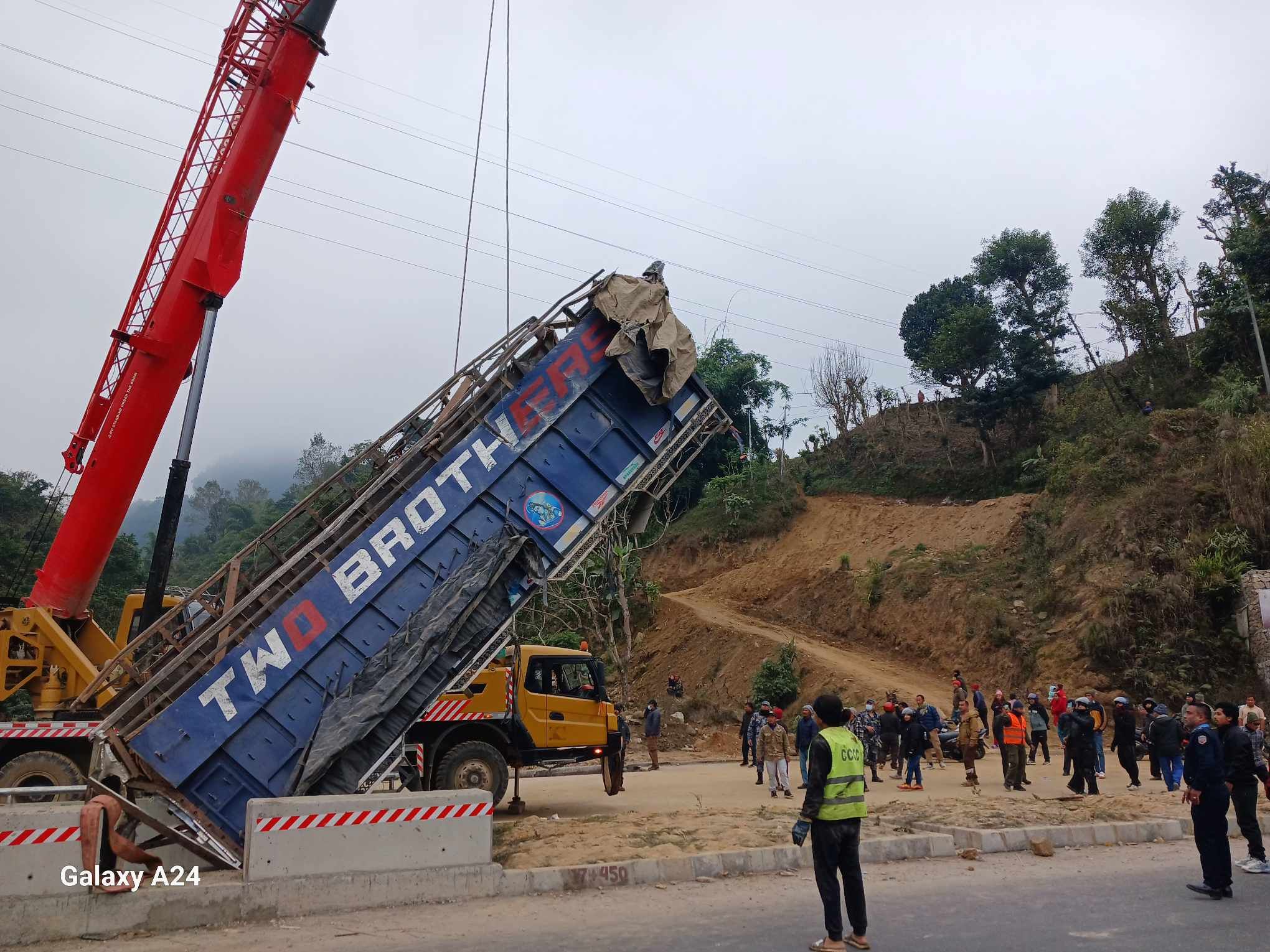 ठक्कर पश्चात् स्करपियो सडकमै रहेको र ट्रक पुलकोबीच भागबाट खसेर दुर्घटनाग्रस्त भएको थियो । स्करपियोमा सवार चार जना सकुसल रहेको प्रहरीले जनाएको छ । दुर्घटनाग्रस्त ट्रकलाई क्रेनको सहायताले तानिएको थियो ।