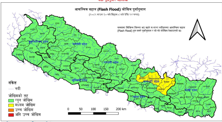 २३ जिल्ला बाढीको मध्यम जोखिममा: बाढी पूर्वानुमान महाशाखाद्वारा एल्लो अलर्ट जारी