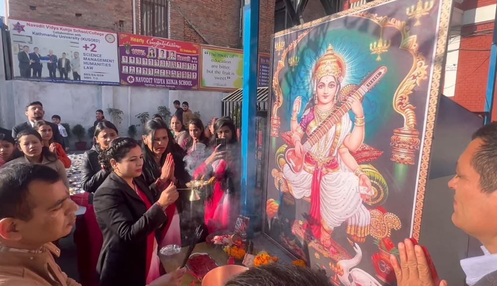 उपत्यकाका स्वयम्भू, मैतीदेवी र गैरीधारास्थित नीलसरस्वती, ललितपुरको लेलेलगायत अन्य जिल्लामा रहेका सरस्वतीका मन्दिरमा आज बिहानैदेखि पूजाआजा गर्न भक्तजन, खासगरी छात्रछात्राको घुइँचो लाग्ने गर्छ। सरस्वतीलाई चढाइएको सात गेडा अक्षता दाँतले नछोई निलेमा विद्या र बुद्धि स्फुरण भई विद्यादेवीबाट चेतनाको ज्योति पाइन्छ भन्ने धार्मिक विश्वास छ।