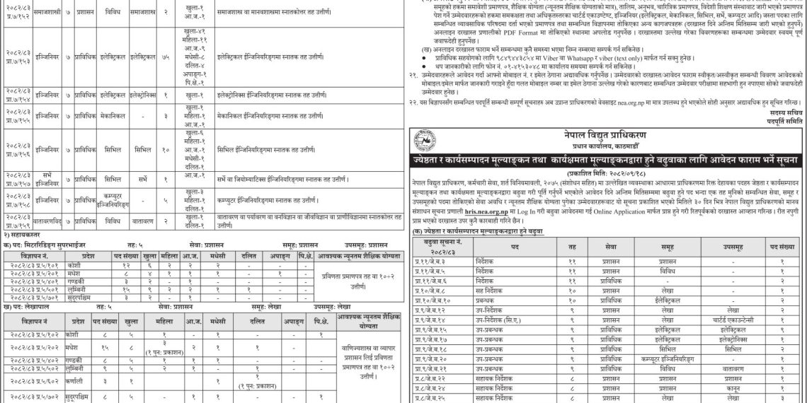 काठमाडौं । नेपाल विद्युत् प्राधिकरणले ठूलो संख्यामा कर्मचारी माग गरेको छ। प्राधिकरणले अधिकृतस्तर, सहायकस्तर, लेखापाल र सुपरभाइजरका विभिन्न पदहरूमा गरी २६५ जनाबाट दरखास्त आह्वान गरेको हो।