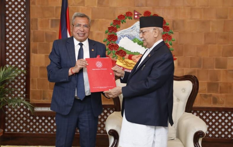 चेम्बर पदाधिकारीसंगको भेटमा प्रधानमन्त्री ओलीले उधमशिलता विकास र रोजगारी सिर्जना सरकारको पहिलो प्राथमिकता रहेको बताए । मुलुकको आर्थिक अवस्था सुदृढ र प्रभावकारी परिणाम दिनेगरी काम शुरु भएको प्रधानमन्त्री ओलीको भनाई छ । मुलुकको समग्र आर्थिक पक्षको मुल्याङक गरी सरकारले नीतिगत निर्णयहरु गर्दै जाने प्रधानमन्त्री ओलीले बताए । उनले ढुक्क भएर लगानी एवं व्यवसायिक गतिविधी गर्न चेम्बर पदाधिकारी एवं कार्यसमितिका सदस्यहरुसंग आग्रह गरे।