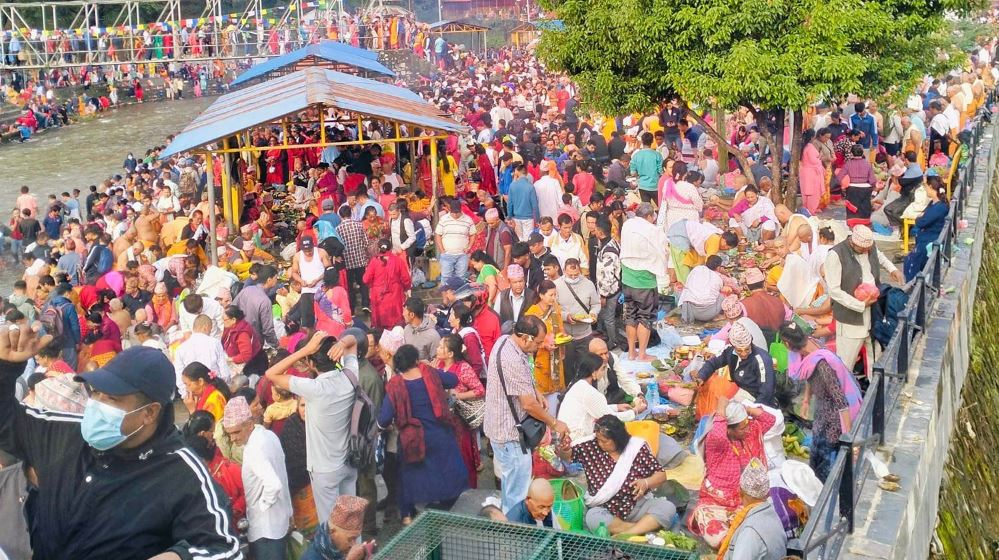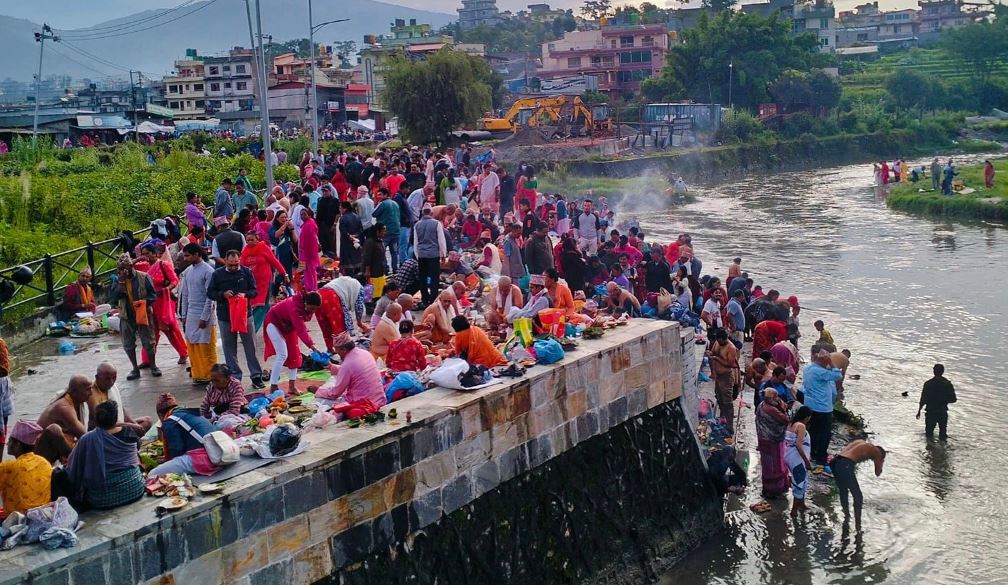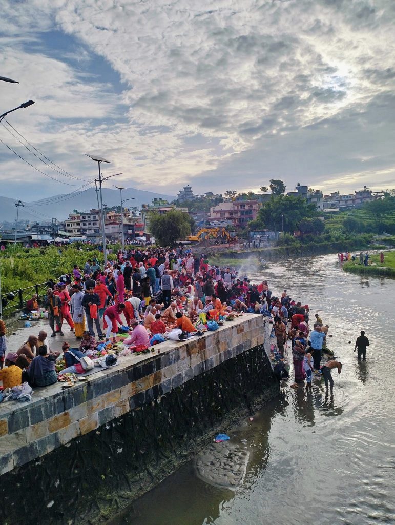 सोमबार बिहान गोकर्णेश्वर महादेव मन्दिरस्थित बागमती नदी किनारामा दिवङ्गत बाबुको नाममा तर्पण, पिण्डदान तथा सिदादान गर्नेहरूको भीड लागेको छ ।