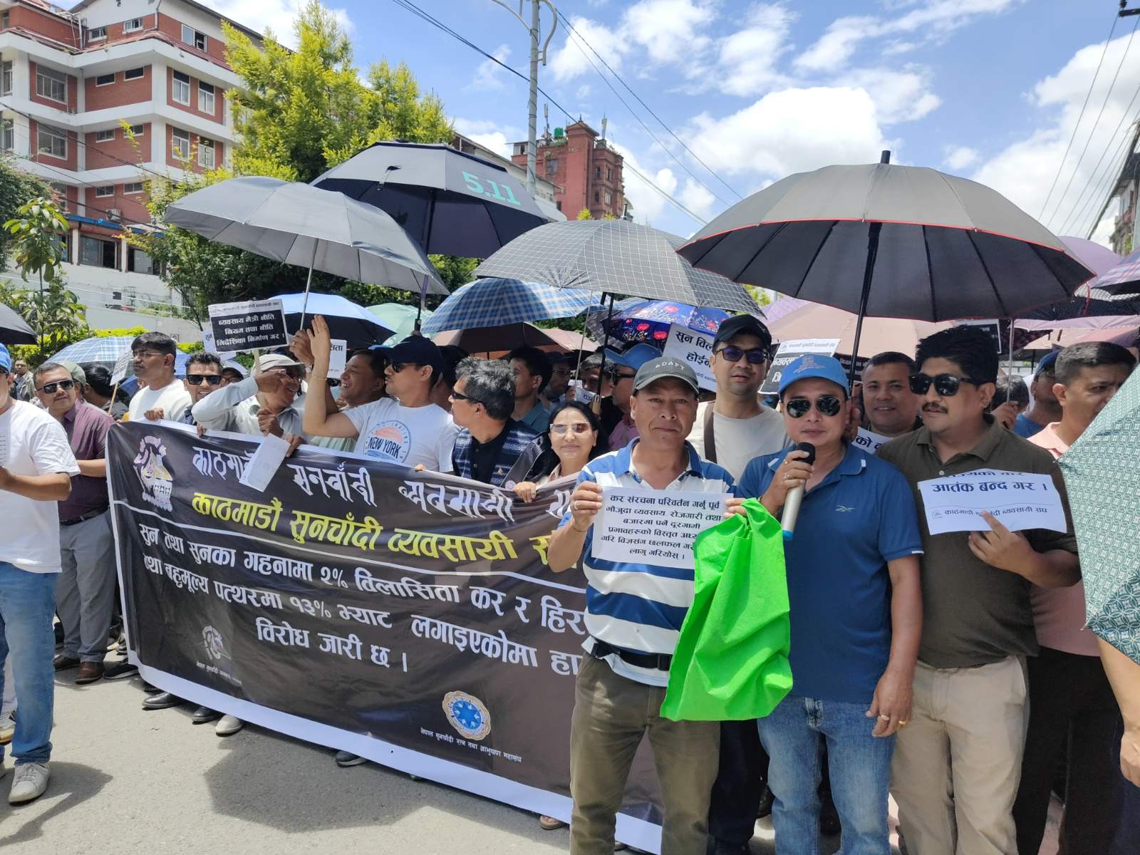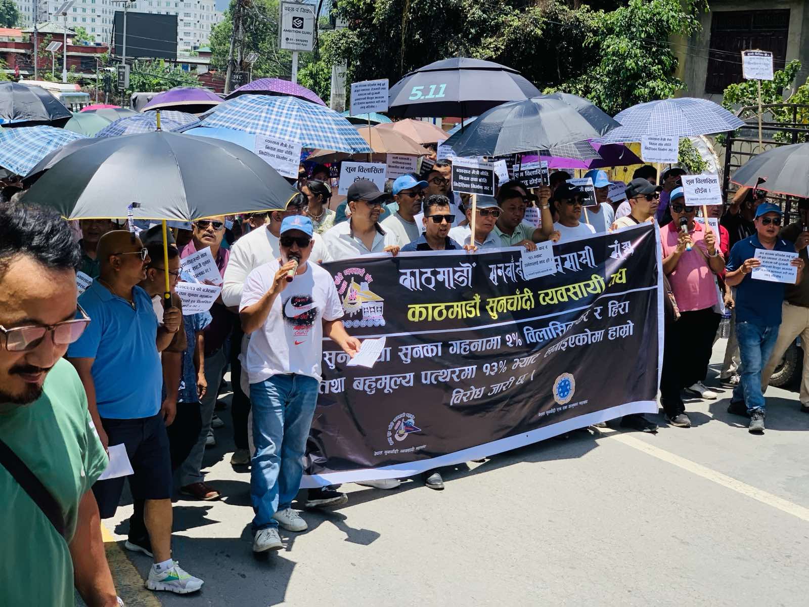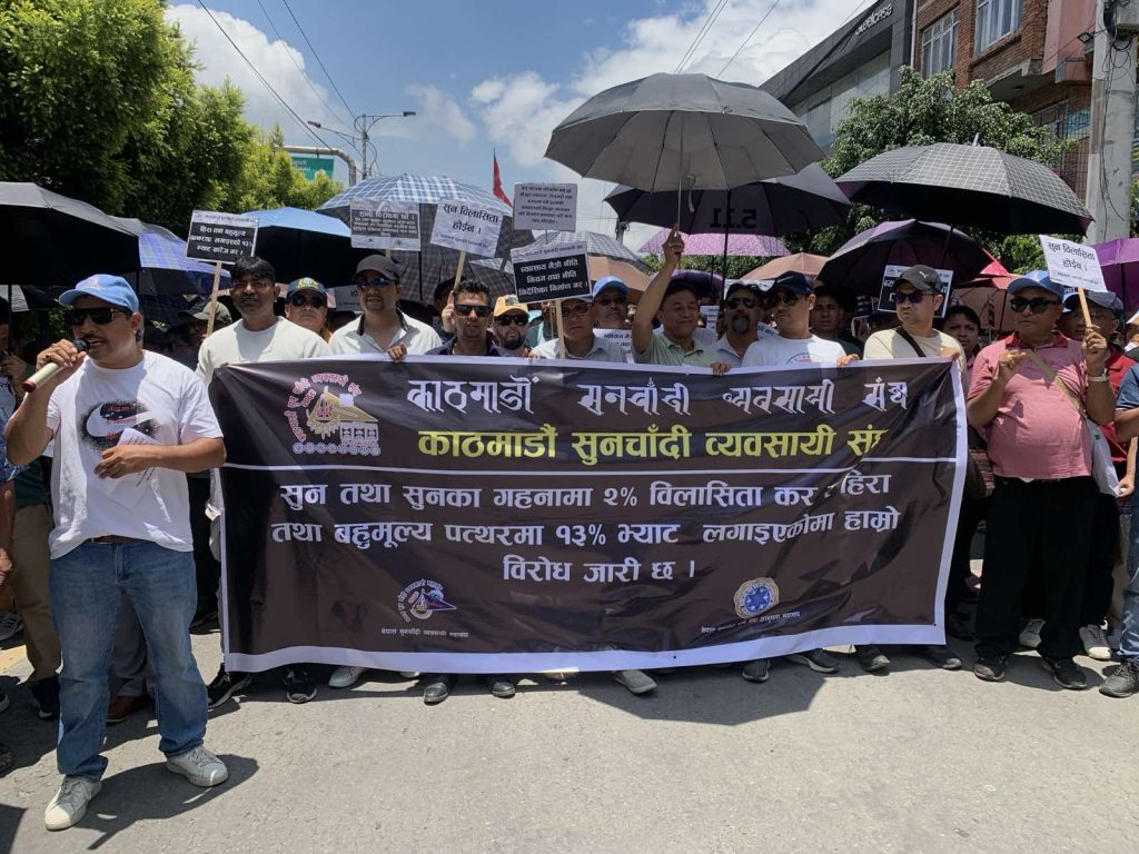 सुनचाँदी व्यवसायीहरू प्लेकार्डसहित माइतीघरमा भेला भएका थिए। उनीहरूले ‘व्यापार चल्न दे, कर हटाऊ’, ‘हाम्रो श्रमको मूल्य दे’, ‘विलासी कर होइन, न्याय चाहिन्छ’ भन्ने नारासमेत लगाएका थिए।