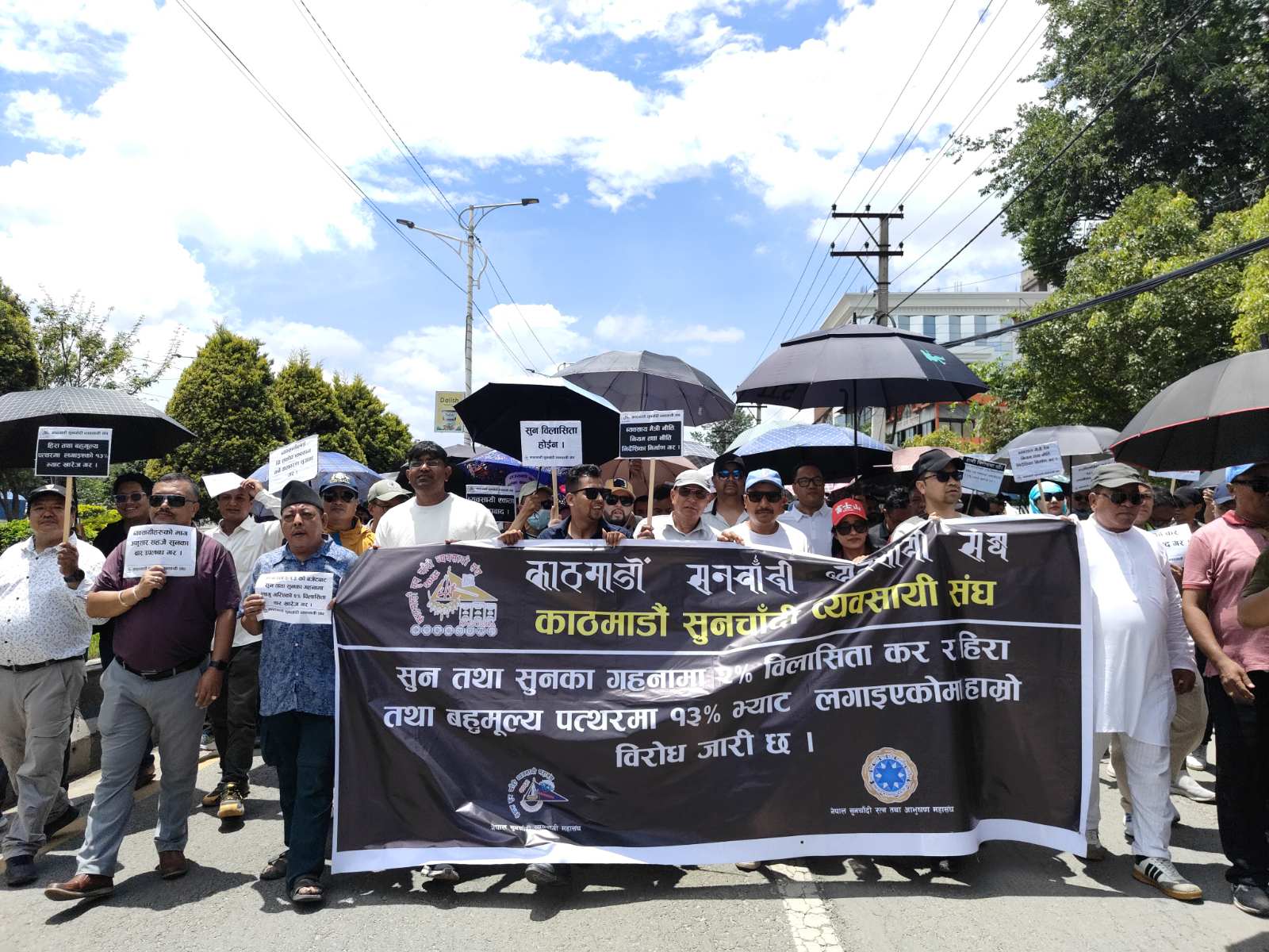 सुनचाँदी व्यवसायीहरू प्लेकार्डसहित माइतीघरमा भेला भएका थिए। उनीहरूले ‘व्यापार चल्न दे, कर हटाऊ’, ‘हाम्रो श्रमको मूल्य दे’, ‘विलासी कर होइन, न्याय चाहिन्छ’ भन्ने नारासमेत लगाएका थिए।