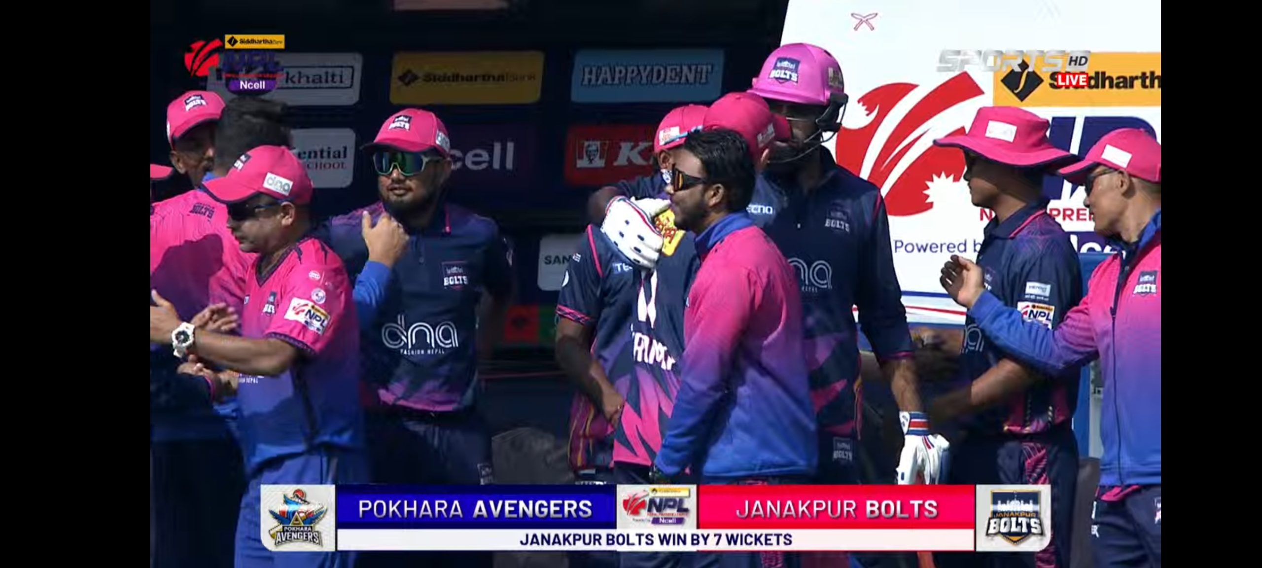 काठमाडौं । नेपाल प्रिमियर लिग (एनपीएल) मा जनकपुर बोल्ट्सले तेस्रो जित निकालेको छ । बिहीबार बिहान कीर्तिपुरस्थित त्रिवि मैदानमा भएको खेलमा पोखरा एभेन्जर्सलाई ७ विकेटले पराजित गर्दै एनपीएलमा जनकपुरले तेस्रो जित निकालेको हो ।
