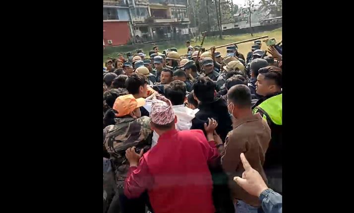 त्यसपछि विरोधमा उत्रिएका आयोजक पक्षका अरू व्यक्ति र नगर प्रहरीबीच झडप भएको हो । झडपमा परी नगर प्रहरी र आयोजक दुवैतर्फका गरी करिब एक दर्जन मानिस घाइते भएका छन् ।
