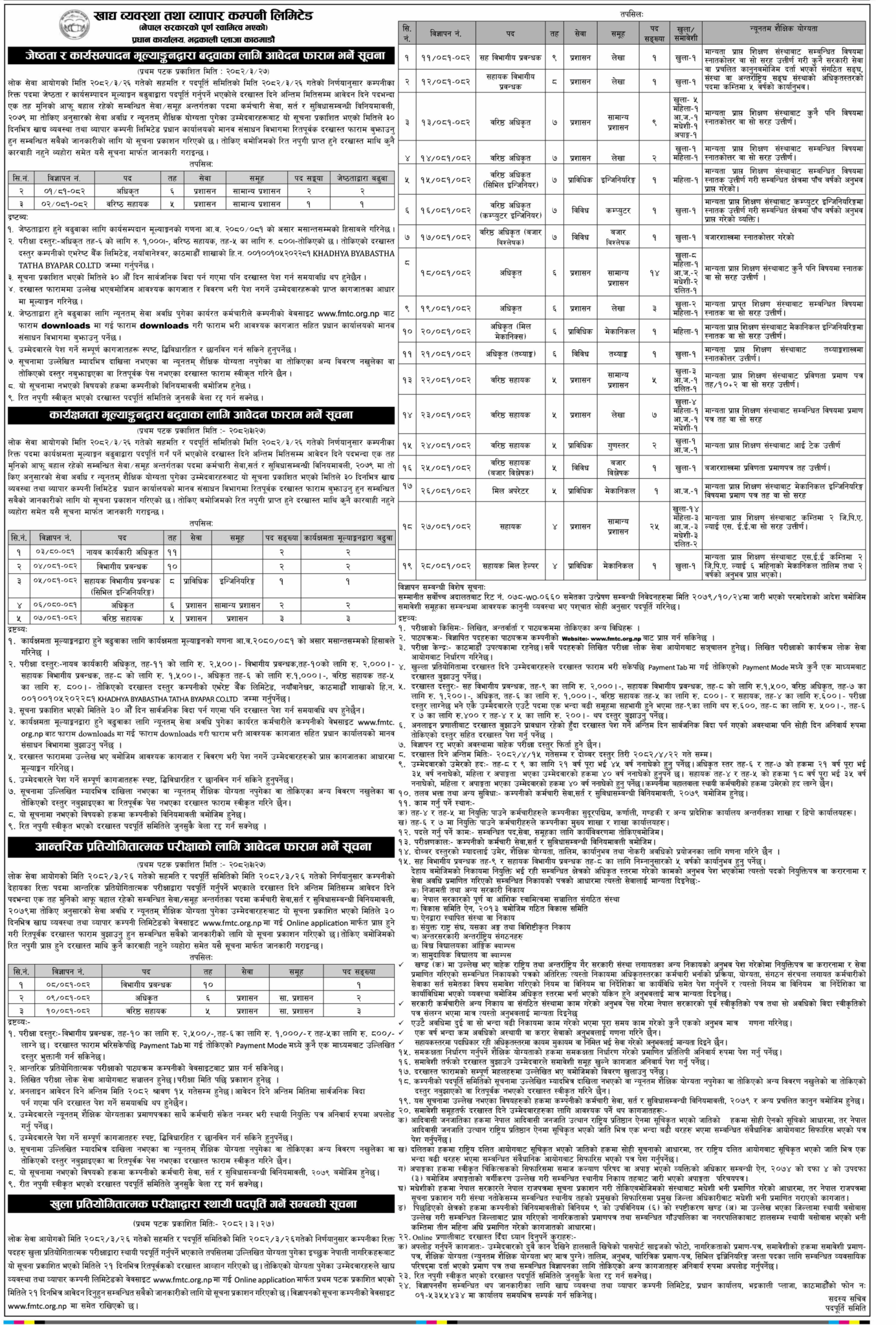 कम्पनीले सह विभागीय प्रबन्धक, सहायक विभागीय प्रबन्धक, वरिष्ठ अधिकृत, अधिकृत, सहायक अधिकृत र सहायक पदहरूमा नयाँ कर्मचारी मागेको छ। साथै, आन्तरिक प्रतिस्पर्धा र कार्यसम्पादन मूल्यांकनद्वारा गरिने बढुवासम्बन्धी सूचना पनि कम्पनीले सार्वजनिक गरेको छ।
