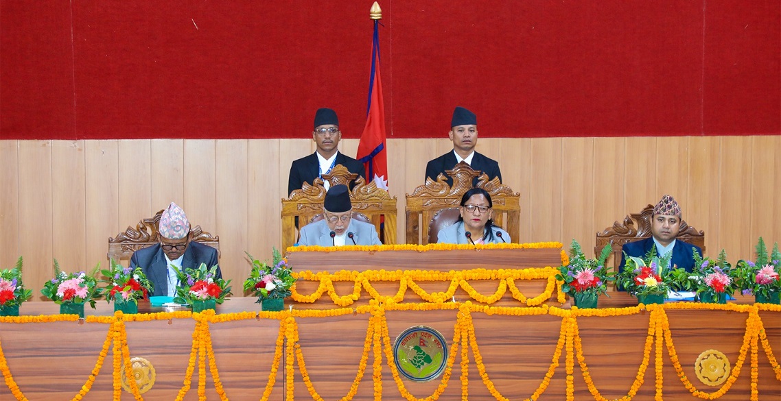 नीति, कार्यक्रम प्रस्तुत गर्दै प्रदेश प्रमुख मियाँले समृद्ध कर्णालीः सुखारी कर्णालीवासीको दीर्घकालीन सोच कार्यान्वयन गर्न भौतिक सुविधा, सम्मानजनक रोजगारी, उच्च आर्थिक वृद्धिमा बजेट केन्द्रित रहने बताए।