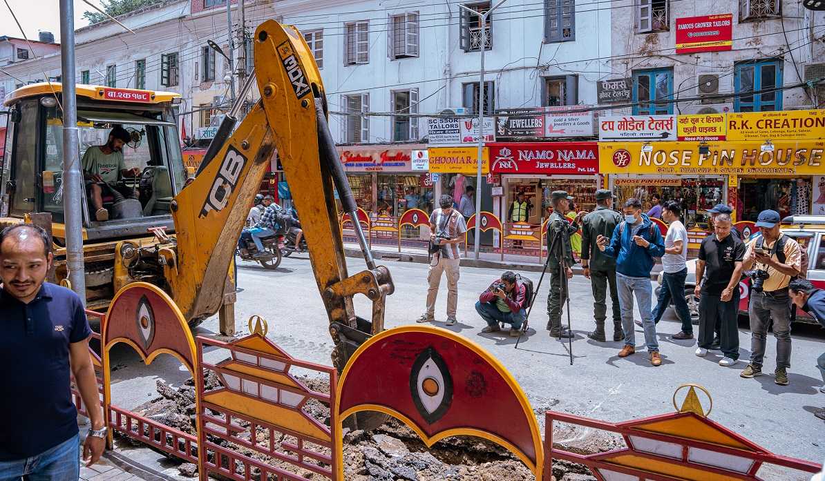 पैदलयात्रीको संख्या बढ्दै गएपछि यात्रा सहजता तथा सुरक्षाका लागि महानगरपालिकाले खुला बोलपत्रबाट कामका लागि निर्माण पक्ष आव्हान ग¥यो । निर्माण पक्ष छानेर कामको जिम्मा दियो । निर्माण पक्षले जेठ ११ गते काम थाल्यो । काम थालेको भोलिपल्ट डिभिजन सडक कार्यालयले संस्थागत अवरोध ग¥यो । यसपछि काम रोकियो । महानगरपालिकाले डिभिजन सडक कार्यालयले गरेको हस्तक्षेपविरुद्ध अन्तरिम आदेश माग गर्दै जेठ २७ गते उच्च अदालतमा रिट दायर ग¥यो । रिटमा सुनुवाई गर्दै अदालतले असार ३० गते महानगरपालिकाले मागबमोजिम अन्तरिम आदेश दियो । यसपछि पुनः काम अगाडि बढेको छ ।