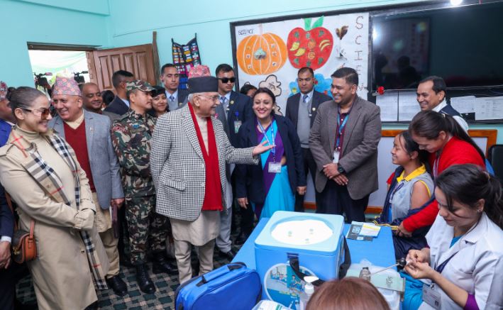 विश्व क्यान्सर दिवसको सन्दर्भ पारेर स्वास्थ्य तथा जनसंख्या मन्त्रालयले आज महाराजगञ्जको शिवपुरी माध्यमिक विद्यालयमा आयोजना गरेको कार्यक्रममा प्रधानमन्त्री ओलीले काठमाडौं महानगरपालिका–३ का स्वास्थ्यकर्मीलाई स्वास्थ्य किट प्रदान गरी अभियानको थालनी गरेका हुन् ।