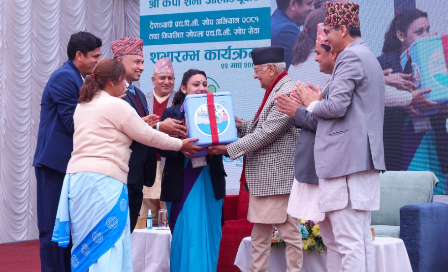 काठमाडौं । प्रधानमन्त्री केपी शर्मा ओलीबाट आजदेखि देशभर पाठेघरको मुखको क्यान्सरविरुद्धको निःशुल्क एचपिभी खोप अभियान शुभारम्भ भएको छ ।
