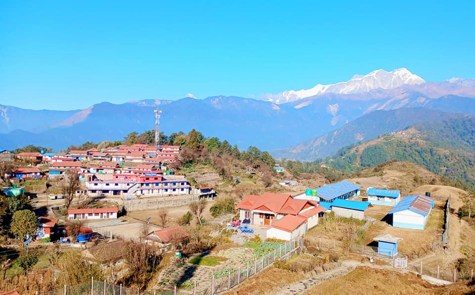 काठमाडौं । डाँडाको थाप्लोमा झुरुप्प बस्ती। ढुंगा र माटोबाट बनेका घरहरू। टिनले छाइएका रंगीन छाना। पृष्ठभूमिमा झलमल्ल हिमाल। स्वर्गकै एउटा टुक्रा! मुलुककै पहिलो स्मार्ट भिलेज–घलेगाउँ (२,०७० मिटर)।