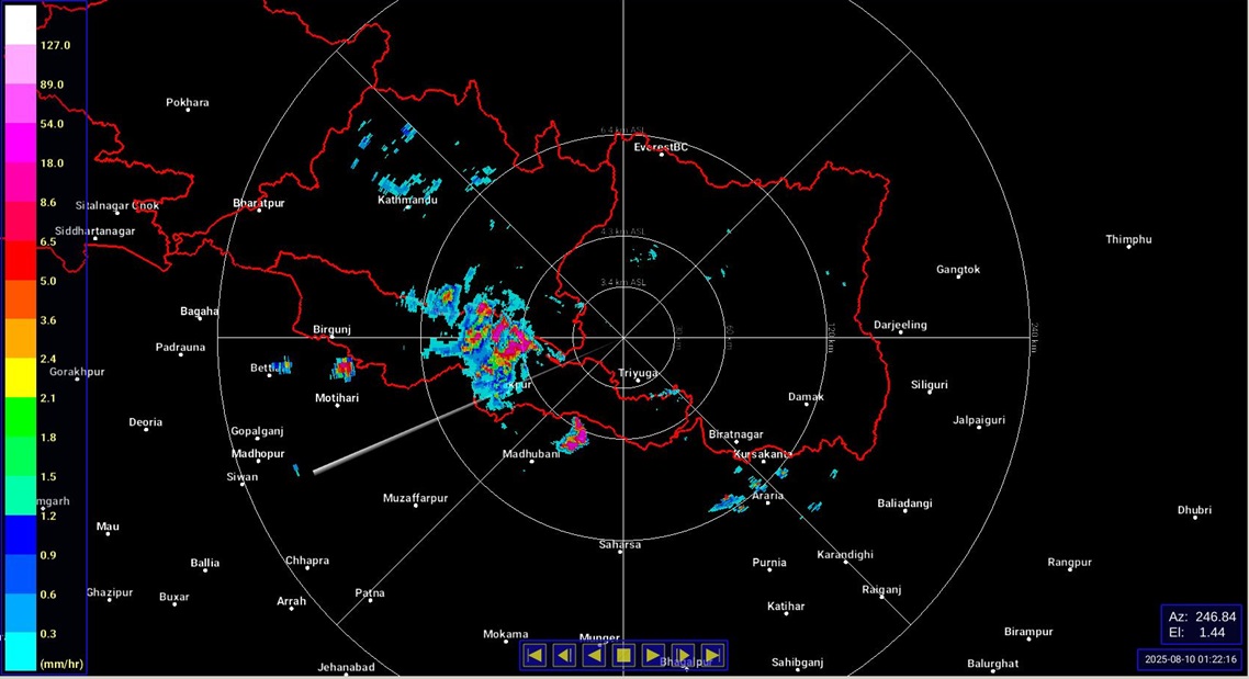 उदयपुर राडारबाट प्राप्त तथ्यांकअनुसार उक्त क्षेत्रमा बनेको मौसमी प्रणाली दक्षिण–पश्चिम दिशातर्फ सर्दै गएको र यस क्रममा वर्षाको प्रभाव बढ्न सक्ने भएकाले सतर्क रहन विभागले अनुरोध गरेको हो।