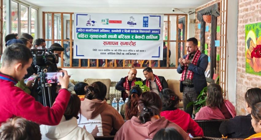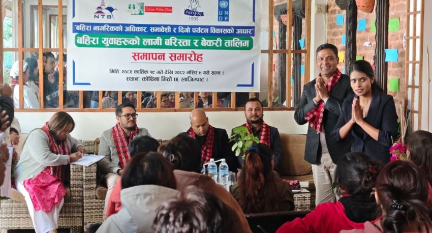 तालिमको समापन सत्रमा यूएनडिपी दिगो पर्यटन परियोजनाका व्यवस्थापक धर्म दवाडीले परियोजनाले पर्यटन क्षेत्रमा दक्ष जनशक्ति उत्पादन, क्षमता अभिवृद्धि र उद्यमशीलता विकासलाई प्राथमिकतामा राखेर काम गर्दै आएको बताए । उनले भने, ‘हाम्रो परियोजनाले समाजका पिछडिएका वर्ग, महिला, दलित, अपाङ्ग, बहिरा लगायतलाई विभिन्न तालिम प्रदान गरी पर्यटन क्षेत्रमा समावेश गर्ने काम गर्दै आएको छ।’