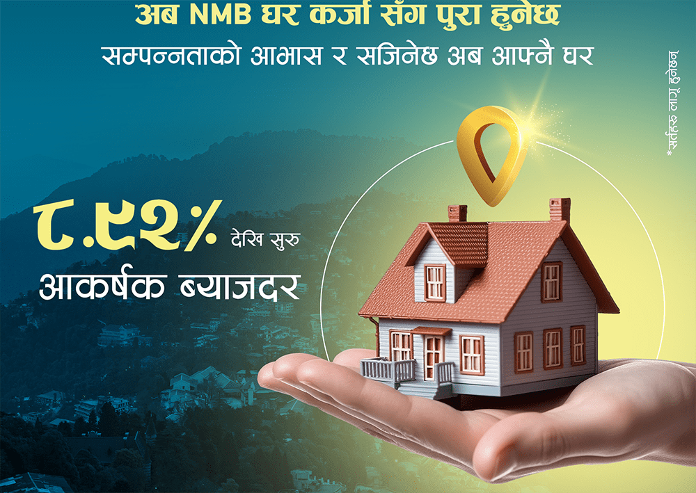 काठमाडौं । एनएमबि बैंकले एनएमबि होम लोनमा मात्र ८.९२ प्रतिशत बाट सुरु हुने फ्लोटिङ ब्याजदर उपलब्ध गराउने भएको छ ।