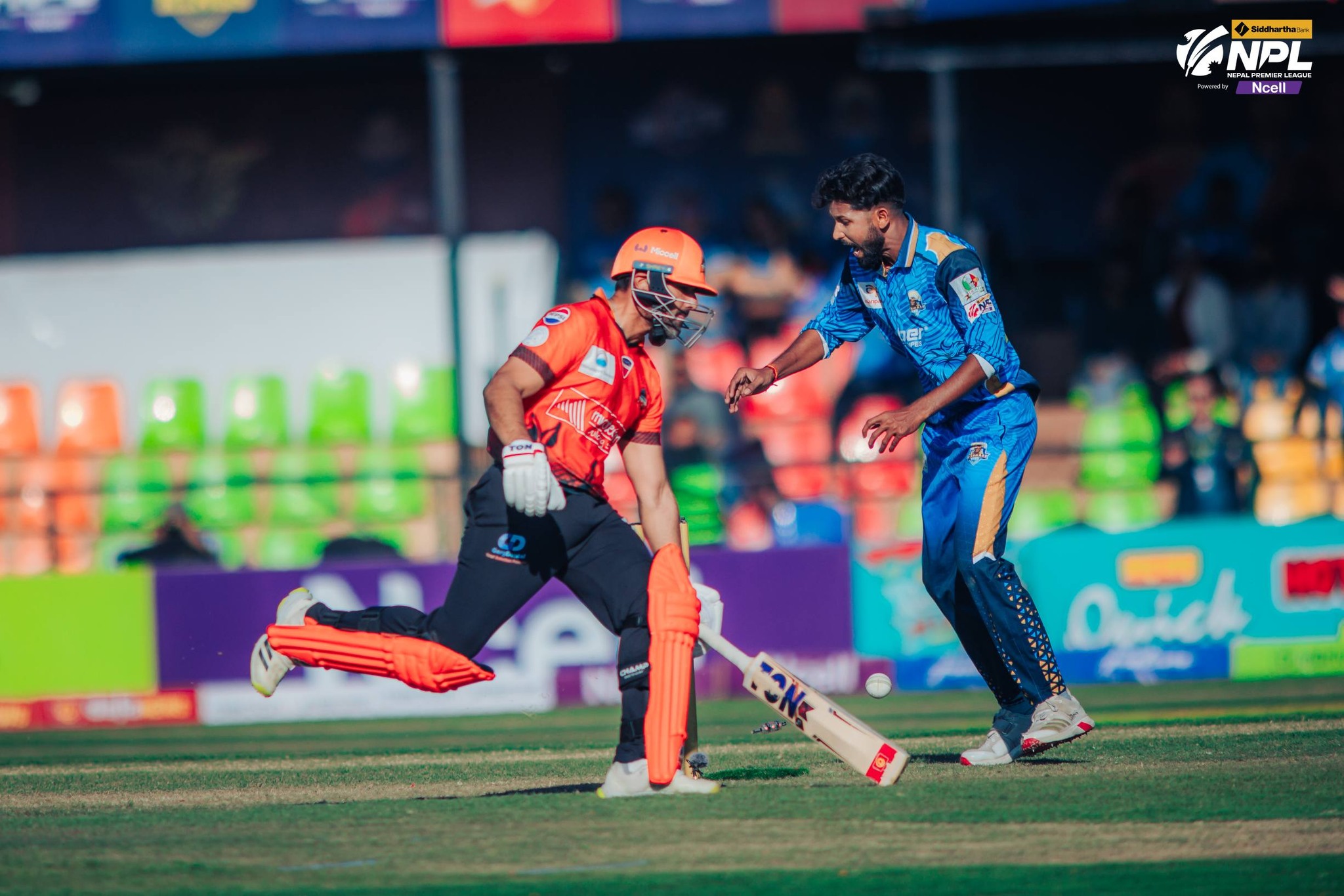 सैफ जैबसँले १६ बलमा दुई चौका र चार छक्कासहित ३८ रन बनाए । ओपनर दीपक बोहराले ३६ बलमा ६ चौका र एक छक्कासहित ४२ रन थपे । यस्तै, कप्तान कुशल मल्लले १५ बलमा दुई छक्कासहित २० रन जोडे । कर्णालीका कप्तान सोमपाल कामीले दुई विकेट लिए । युनिस सिंह, मार्क वाट र युवराज खत्रीले समान एक–एक विकेट हात पारे ।