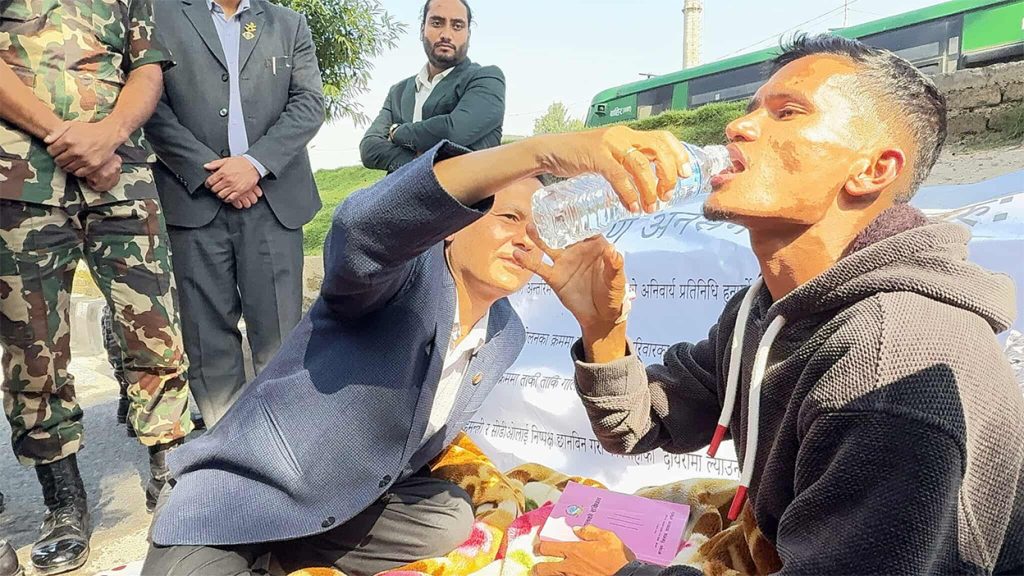 काठमाडौं । निवर्तमान प्रधानमन्त्रीलाई कारबाही गर्नुपर्ने मागमा जाहेरी परिसकेको गृहमन्त्री ओमप्रकाश अर्यालले बताएका छन्। सुदूरपश्चिमको प्रतिनिधित्वको मागसहित आमरण अनसनरत अछामका मदन बुढाको अनसन तोड्दै गृहमन्त्री अर्यालले यस्तो खुलासा गरेका हुन्।