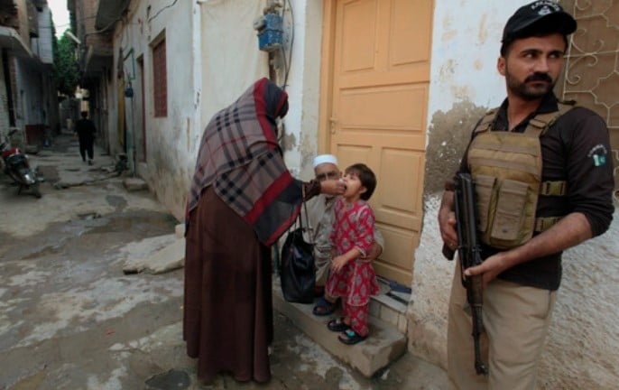 पाकिस्तान र छिमेकी अफगानिस्तान मात्र त्यस्ता मुलुक हुन् जहाँ पोलियोको प्रकोप कायम छ र खोप टोलीहरूमाथि सुरक्षा बलहरू विरुद्ध अभियान चलाइरहेका आतङ्कवादीहरूले प्रायः आक्रमण गर्ने गर्छन्।