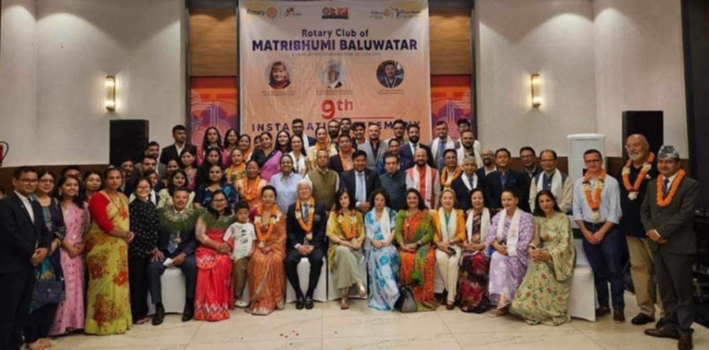 काठमाडौं । रोटरी क्लब अफ मातृभूमी बालुवाटारले बुधबार आफ्नो नवौं पदस्थापन कार्यक्रम सम्पन्न गरेको छ । डिस्ट्रिक्ट गभर्नर राजेन्द्रमान शरेचनको प्रमुख आतिथ्य, काउन्सिल अफ गभर्नर, डिस्ट्रिक्ट अधिकारी, विभिन्न क्लबका आमन्त्रित अतिथि रोटरियन तथा क्लबका सदस्यहरुको उपस्थितिमा क्लबले नवौं पदस्थापन कार्यक्रम सम्पन्न गरेको हो ।