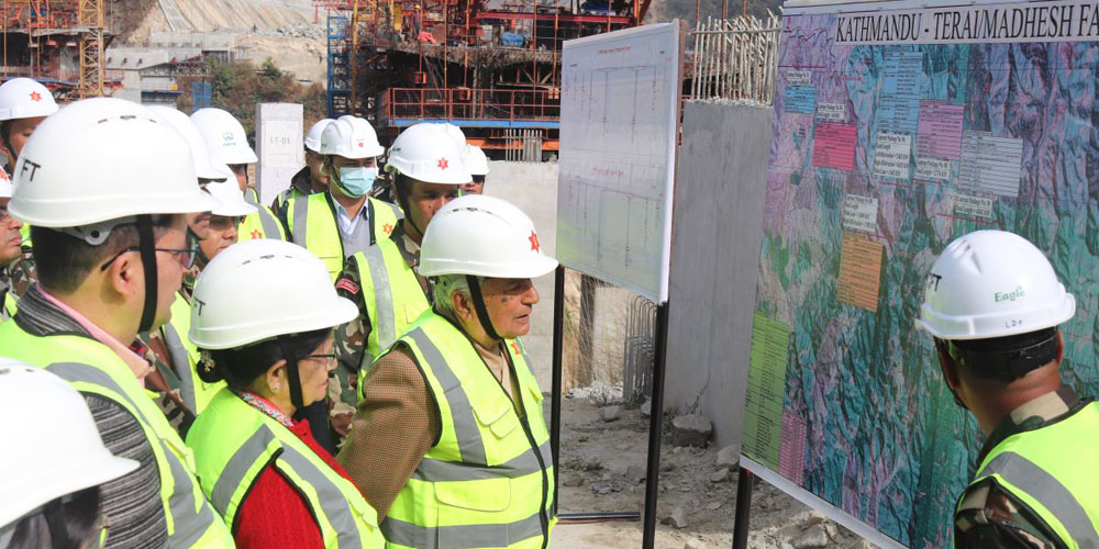 त्यसक्रममा नेपाली सेनाको प्रतिनिधिले अहिलेसम्म भएका प्रगति र निर्माणको अवस्थाबारे राष्ट्रपति पौडेललाई जानकारी गराएका थिए। निरीक्षणपछि राष्ट्रपति पौडेलले आयोजनालाई तोकिएको समयावधिभित्र पूरा गर्न उच्च मनोबलका साथ काम गर्न सेनालाई निर्देशन समेत दिएका थिए। नेपाली सेनाले काठमाडौं, ललितपुर, मकवानपुर हुँदै बाराको निजगढमा पुगेर पूर्वपश्चिम राजमार्गमा जोडिने द्रुतमार्ग निर्माण गरिरहेको छ।