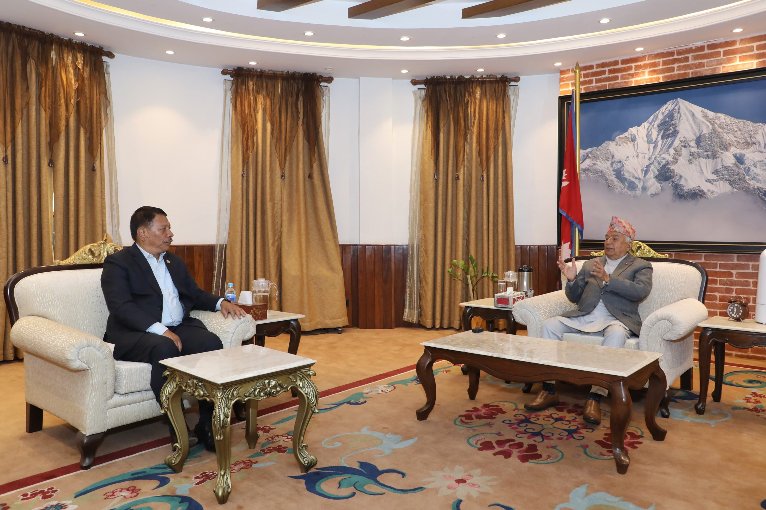 काठमाडौं । राष्ट्रपति रामचन्द्र पौडेल र कार्यवाहक प्रधानमन्त्री प्रकाशमान सिंहबीच भेटवार्ता भएको छ । राष्ट्रपति भवन शीतलनिवासमा शुक्रबार भेटवार्ता भएको हो ।