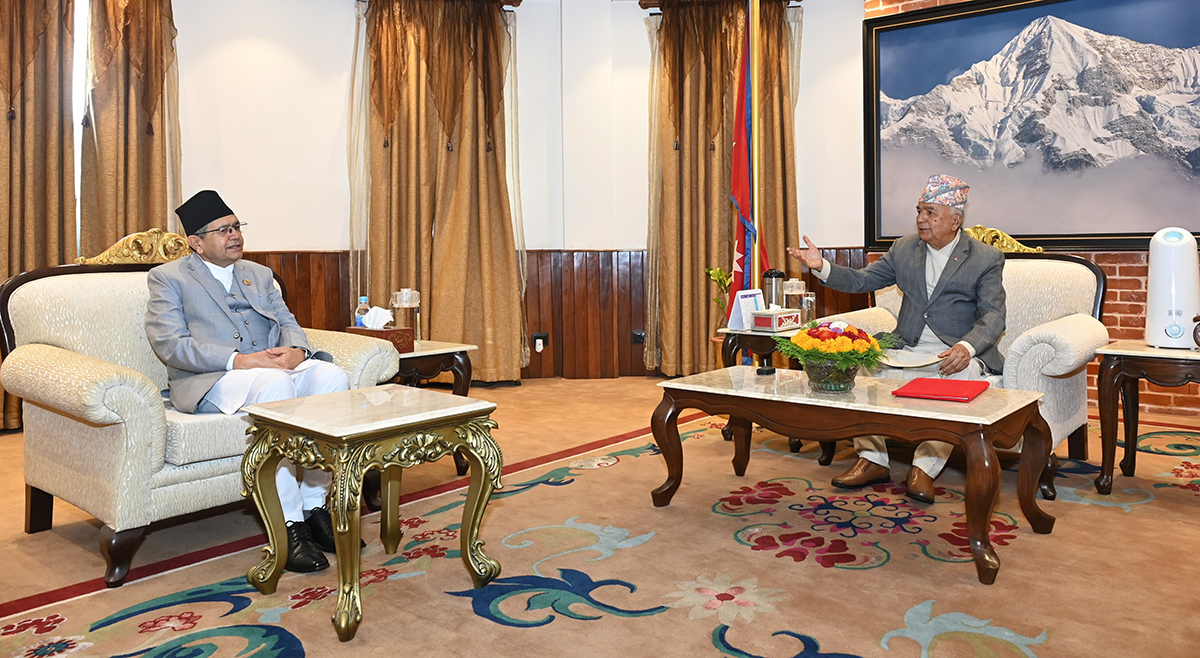 काठमाडौं । राष्ट्रपति रामचन्द्र पौडेलसँग सभामुख देवराज घिमिरेले भेटवार्ता गरेका छन्। राष्ट्रपति कार्यालय शीतल निवासमा उनीहरूबिच भेटवार्ता भएको हो।