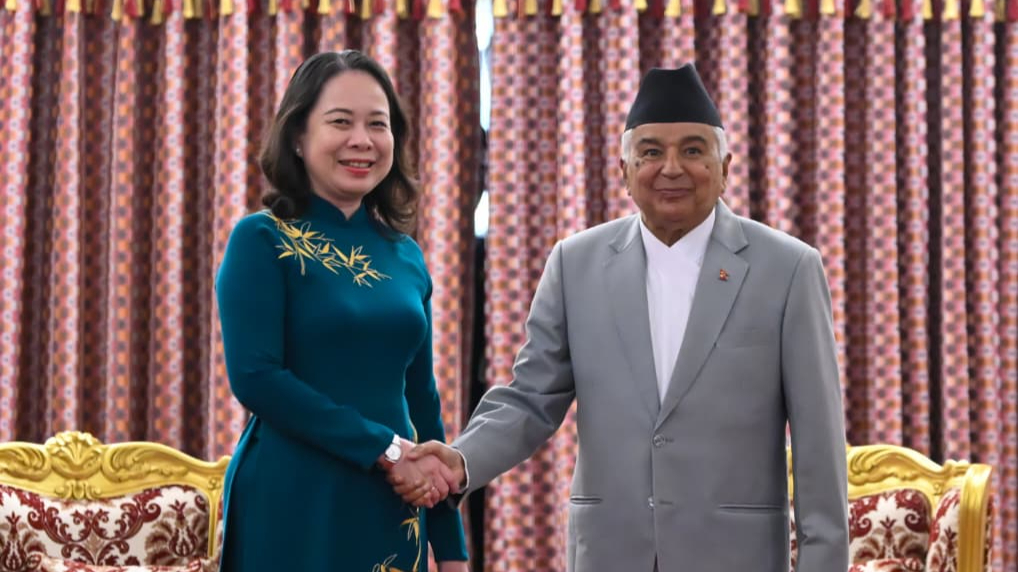 काठमाडौं । राष्ट्रपति रामचन्द्र पौडेलसँग नेपाल भ्रमणमा रहेकी समाजवादी गणतन्त्र भियतनामका उपराष्ट्रपति वो थि आन्ह सुआनले आज भेट गरेकी छिन् ।