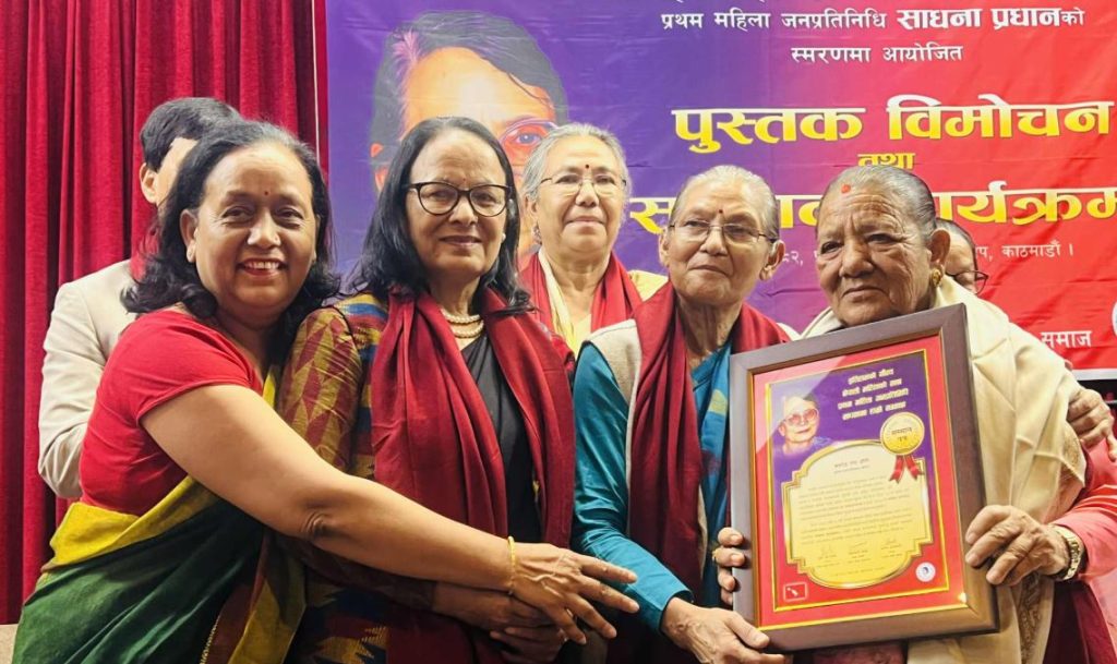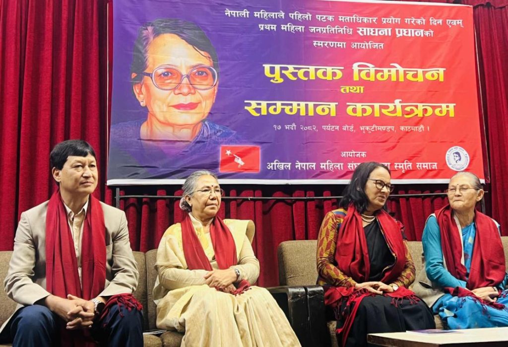 अनेमसंघकी अध्यक्ष टुकाभद्र हमालको अध्यक्षतामा भएको कार्यक्रममा साधना प्रधानको राजनीतिक जीवन समेटिएको पुस्तक साधना विमोचन गरिएको थियो । साधना स्मृति समाजले प्रकाशन गरेको पुस्तकको संयोजन डा. बिन्दा पाण्डेले गरेकी हुन् ।