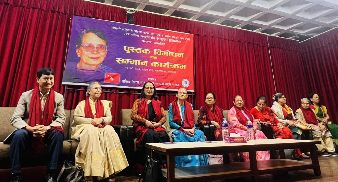 अनेमसंघकी अध्यक्ष टुकाभद्र हमालको अध्यक्षतामा भएको कार्यक्रममा साधना प्रधानको राजनीतिक जीवन समेटिएको पुस्तक साधना विमोचन गरिएको थियो । साधना स्मृति समाजले प्रकाशन गरेको पुस्तकको संयोजन डा. बिन्दा पाण्डेले गरेकी हुन् ।