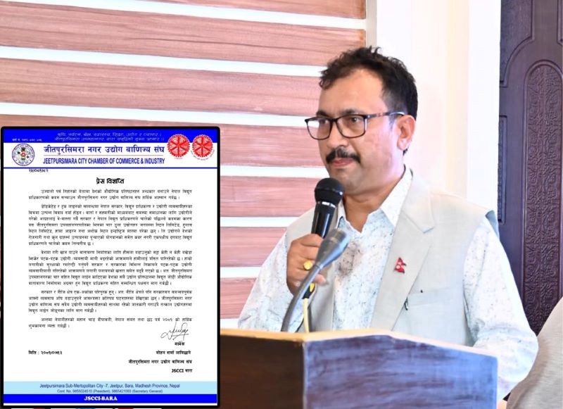 मंगलबार प्रेस विज्ञप्ति जारी गर्दै जीतपुरसिमरा नगर उद्योग वाणिज्य संघका अध्यक्ष मोहन शर्मा लामिछानेले विद्युत प्राधिकारणको कदम सच्याउन आग्रह गरेका छन् ।