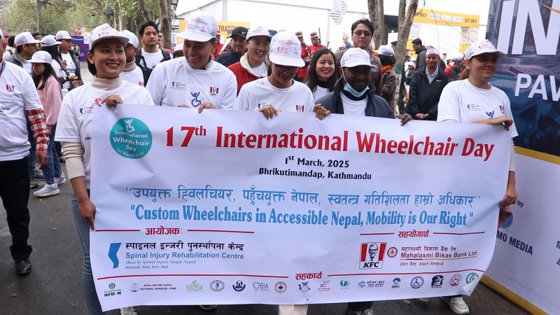 काठमाडौं । स्पाईनल इन्जरी संघ नेपालको मुख्य आयोजना तथा दर्जन भन्दा बढी संघसंस्थाको सह–आयोजनामा ‘उपयुक्त ह्विलचियर, पहुँचयुक्त नेपाल, स्वतन्त्र गतिशिलता हाम्रो अधिकार’ भन्ने मूल नाराका साथ १७औं अन्तर्राष्ट्रिय ह्विलचियर दिवस मनाइएको छ ।काठमाडौंको भृकुटीमण्डमा एक कार्यक्रमको आयोजना गरी सो दिवस मनाइएको हो ।