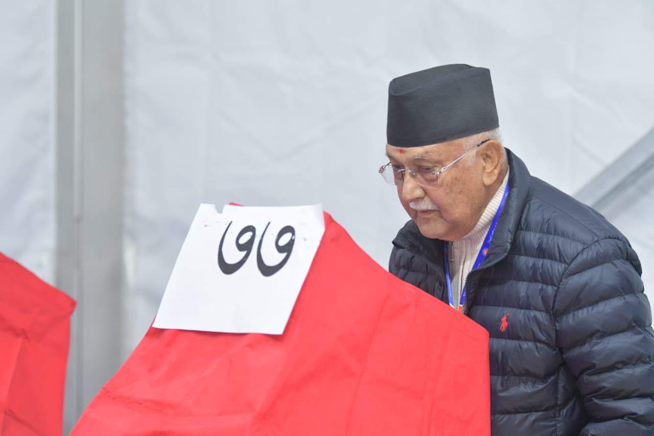 अध्यक्ष पदका उम्मेदवार केपी शर्मा ओली र ईश्वर पोखरेलले मत हालेर मतदान सुरु गरेका छन् । मंगलबार साँझ सुरु हुनैलाग्दा प्राविधिक समस्याका कारण स्थगित भएको मतदान आज बिहान ८ बजेका लागि तय गरिएको थियो । आज बिहान पनि ओली आउन ढिला गरेपछि साढे ९ बजेबाट मतदान सुरु भएको हो ।